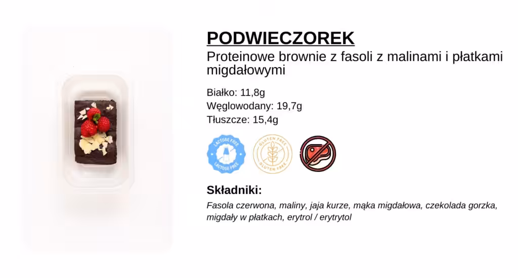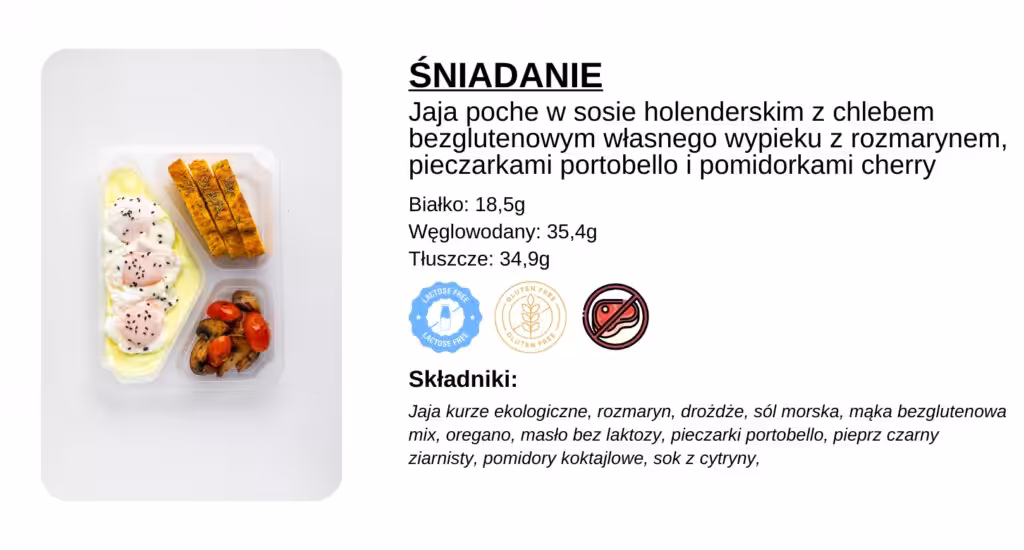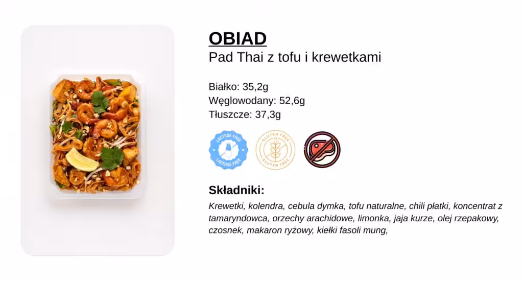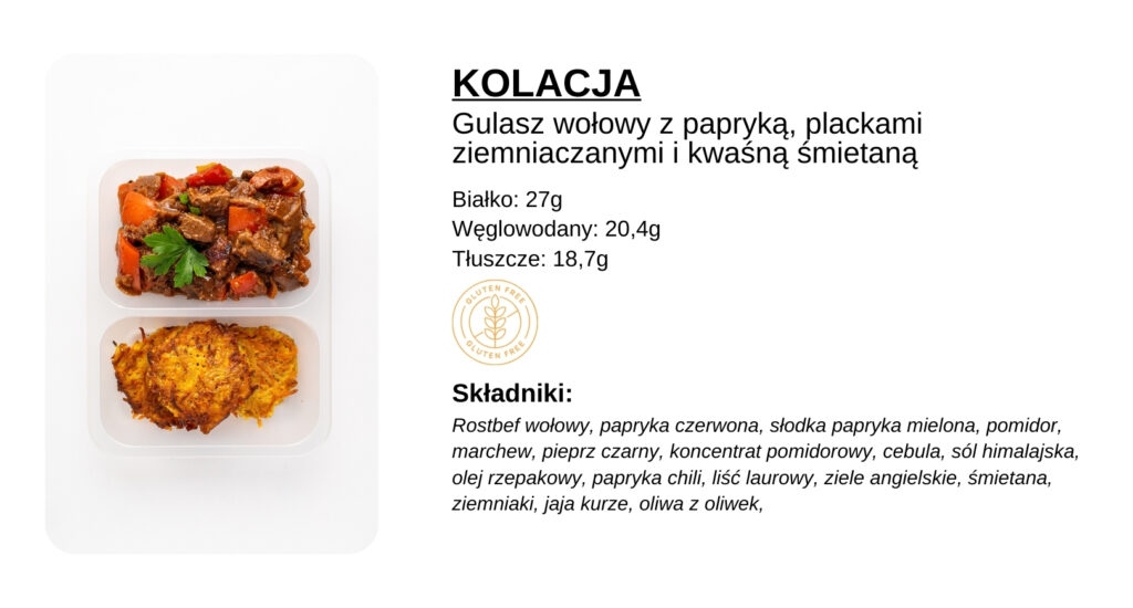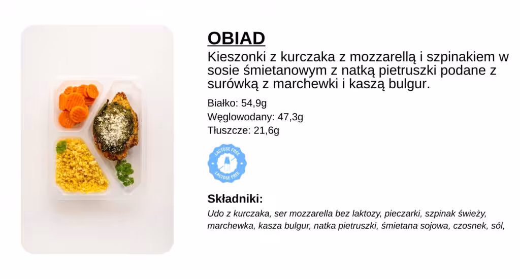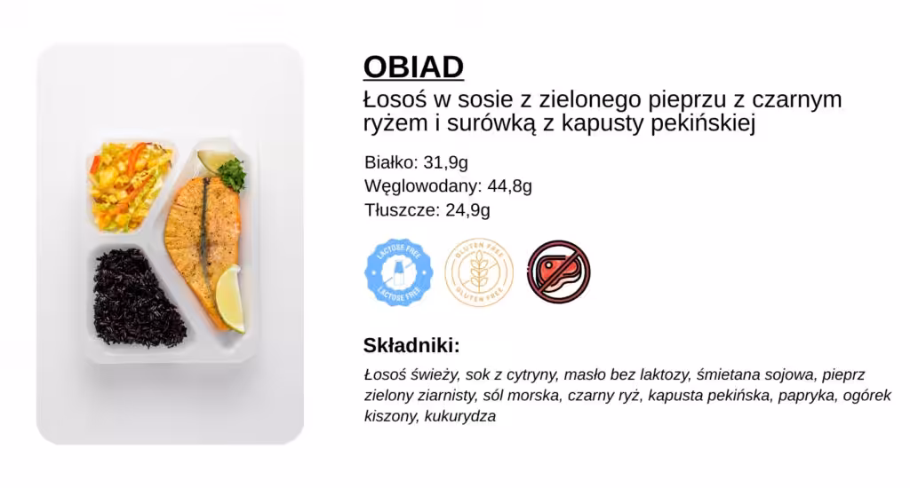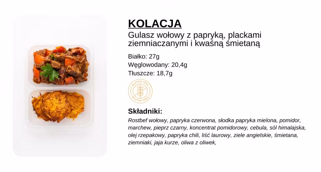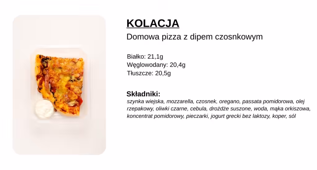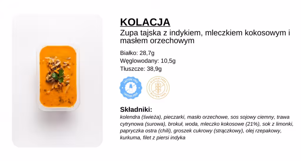 Każde danie opatrzone jest etykietą, na której znajdują się informacje o kaloryczności, alergenach oraz makroskładnikach. Szczegółowy skład posiłków możesz sprawdzić w Panelu Klienta, przy każdym posiłku danego dnia. Wszystkie dania są pakowane z wykorzystaniem technologii MAP, co zapewnia ich świeżość i trwałość.