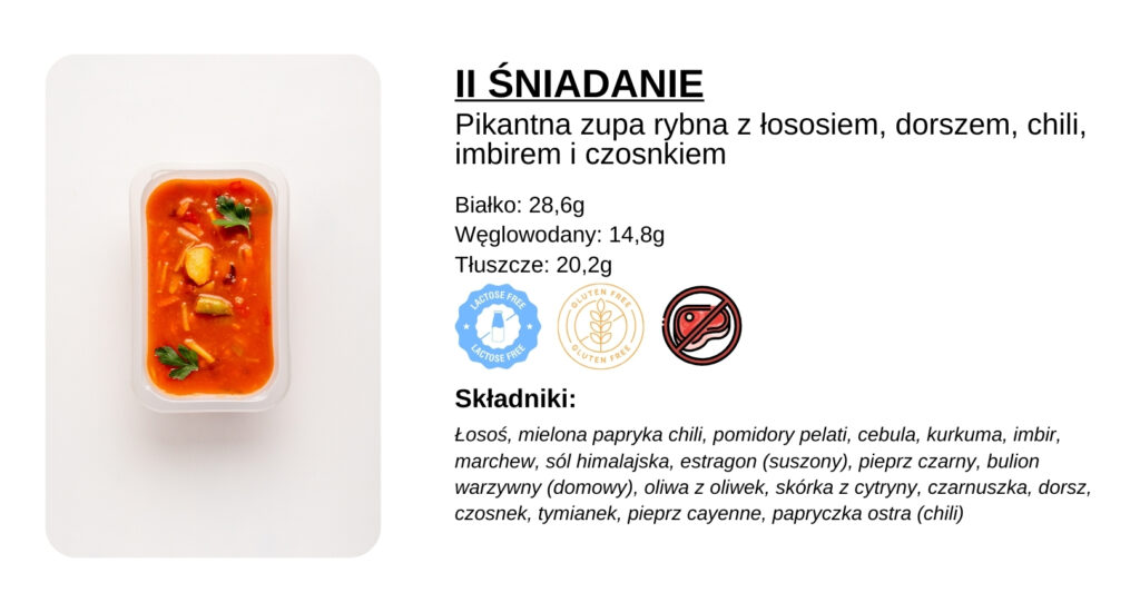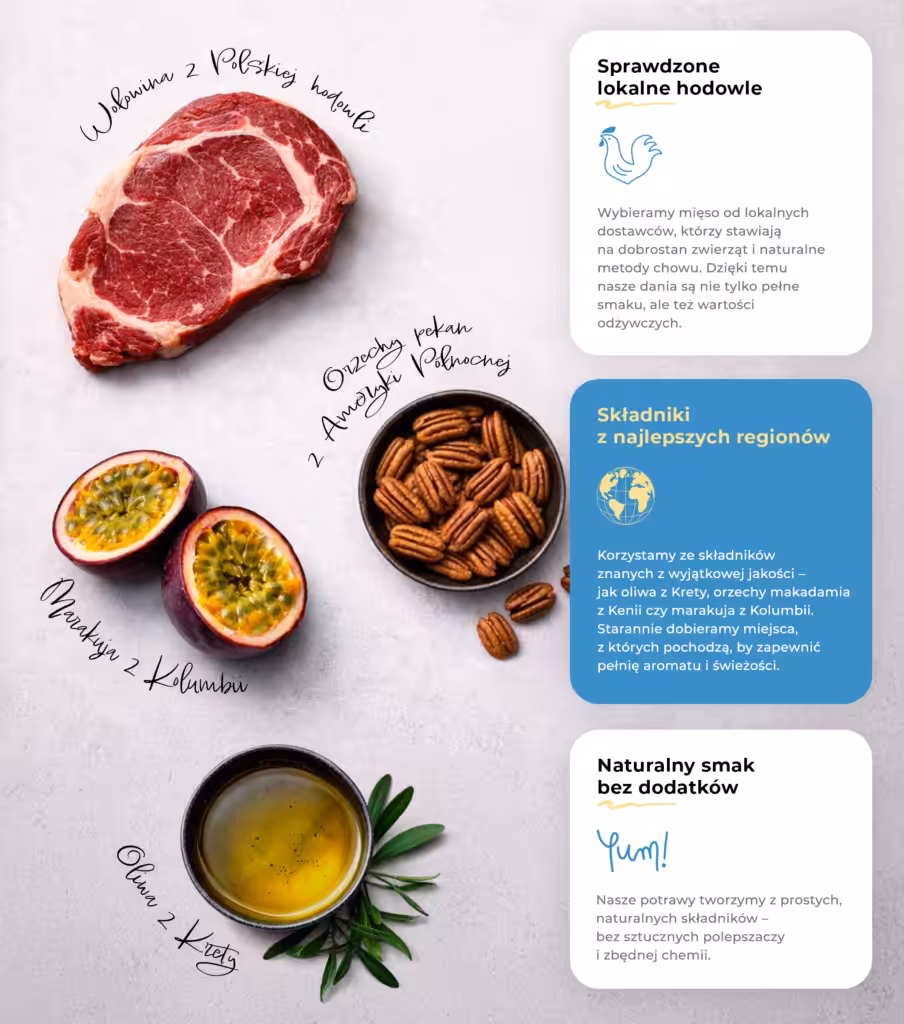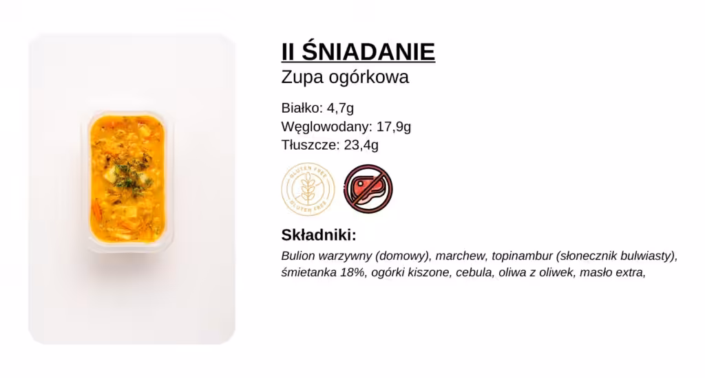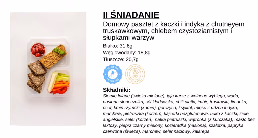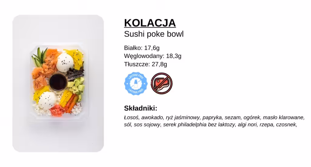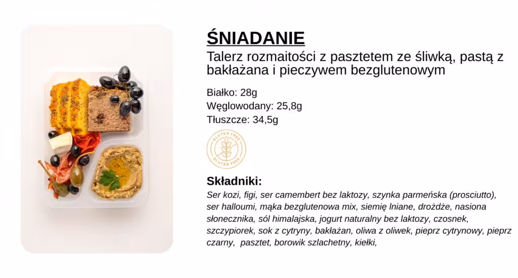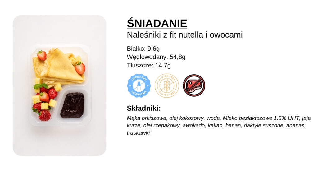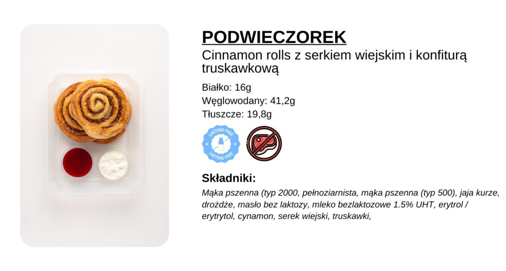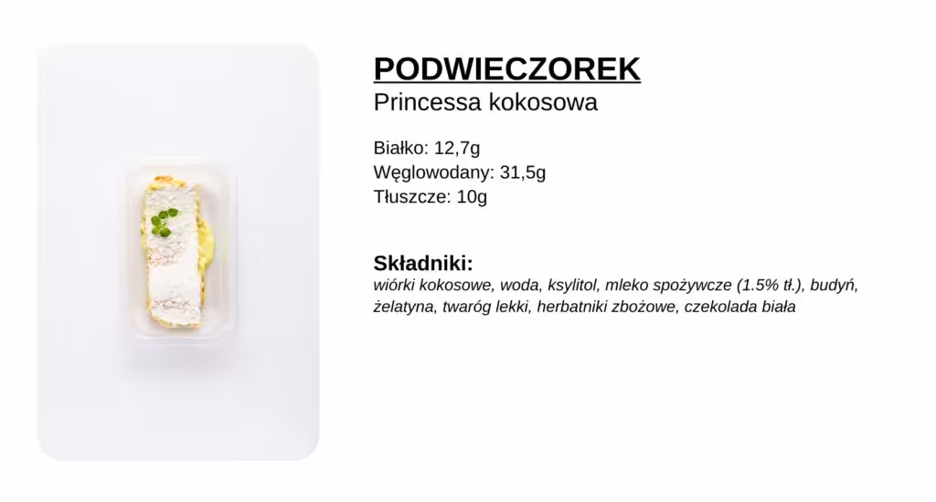 Każde danie opatrzone jest etykietą, na której znajdują się informacje o kaloryczności, alergenach oraz makroskładnikach. Szczegółowy skład posiłków możesz sprawdzić w Panelu Klienta, przy każdym posiłku danego dnia. Wszystkie dania są pakowane z wykorzystaniem technologii MAP, co zapewnia ich świeżość i trwałość.