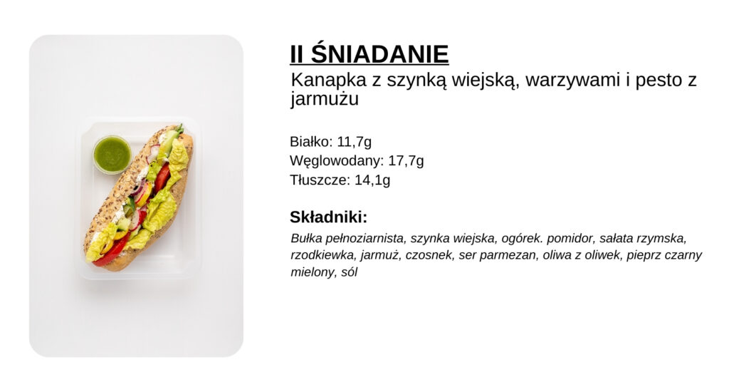 Kanapka z szynką wiejską, warzywami i pesto z jarmużu