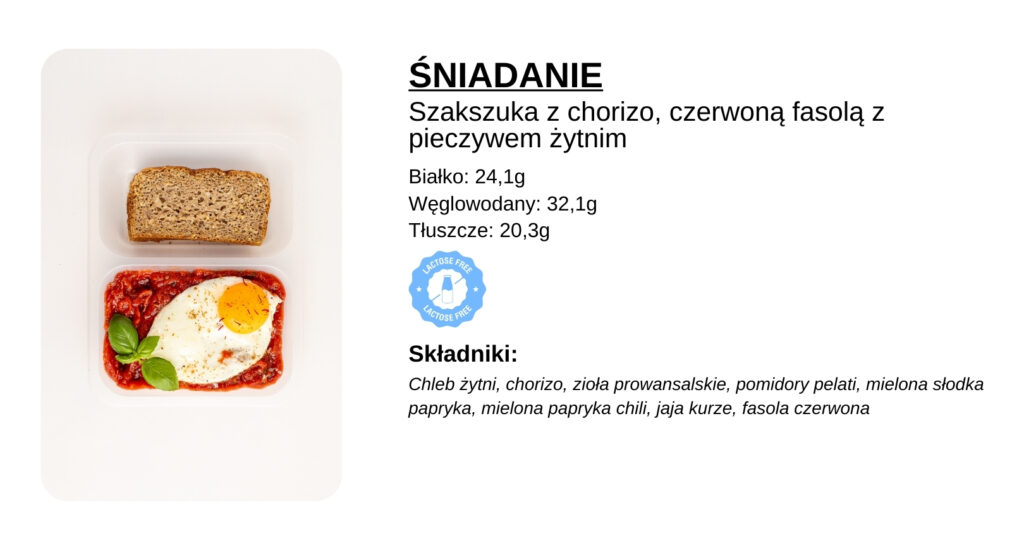 Szakszuka z chorizo, czerwoną fasolą z pieczywem żytnim