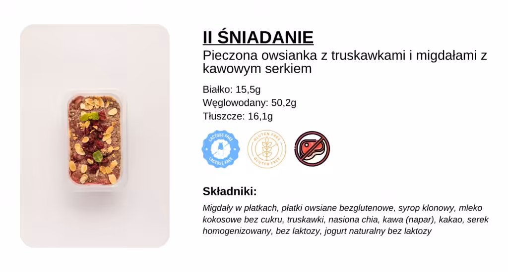 Pieczona owsianka z truskawkami i migdałami z kawowym serkiem