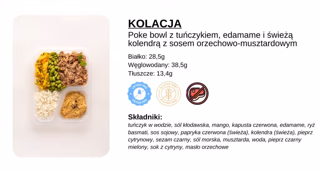 Poke bowl z tuńczykiem, edamame i świeżą kolendrą z sosem orzechowo-musztardowym