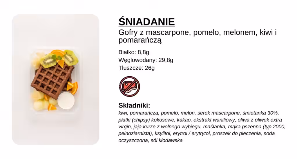 Gofry z mascarpone, pomelo, melonem, kiwi i pomarańczą